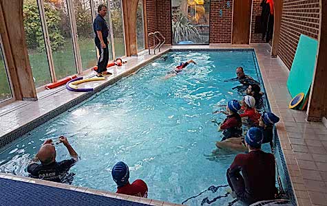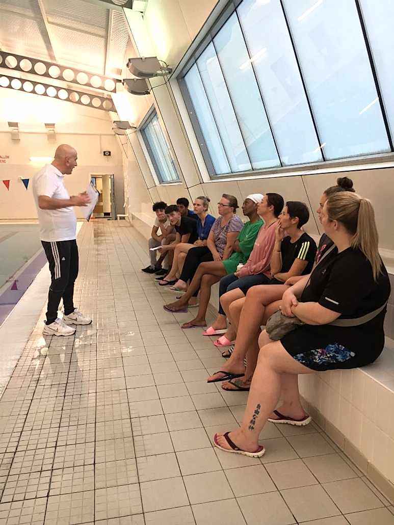Dave Perry & Jacqueline Chevalier at Whiteley Village pool on the STA Award in Teaching Swimming course
